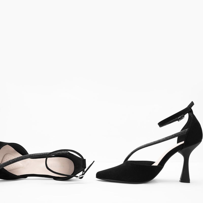 Estas zapatillas son espectaculares y vas a querer llevarlas a cualquier ocasión, este modelo tiene un tacón cuadrado, una cinta cruzada con pedrería además de la hebilla ajustable que te mantendrá segura en todo momento. Dale un toque espectacular a tu look con estas zapatillas.
