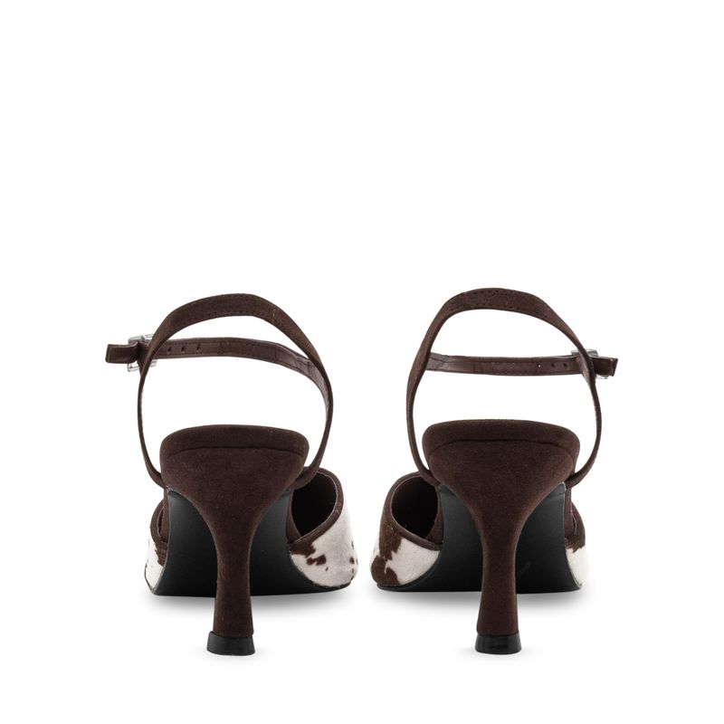 Dale un toque audaz y sofisticado a tu look con esta zapatilla café con estampado animal print. Su diseño destalonado y terminación en punta estilizan visualmente el pie, mientras que la hebilla metálica en color plata añade un detalle moderno y elegante. Perfecta para destacar en cualquier ocasión, esta zapatilla combina estilo, comodidad y actitud en cada paso. Ideal para quienes buscan un calzado versátil con un toque de personalidad salvaje.