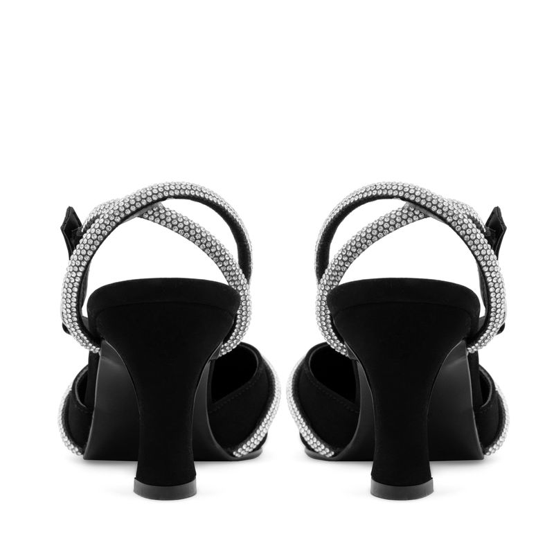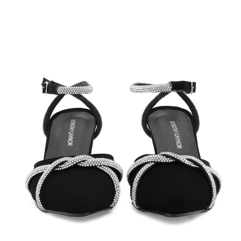Deslumbra en cada paso con nuestra sofisticada zapatilla negra, diseñada para resaltar en tus ocasiones más especiales. Su elegante color negro se complementa con un detalle de cintas cruzadas adornadas con brillantes en la punta, que añaden un toque de glamour y sofisticación a tu look. La cinta ajustable con hebilla no solo proporciona un ajuste personalizado y seguro, sino que también refuerza el diseño con un acabado refinado. Características.
