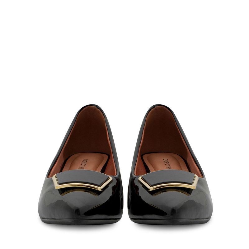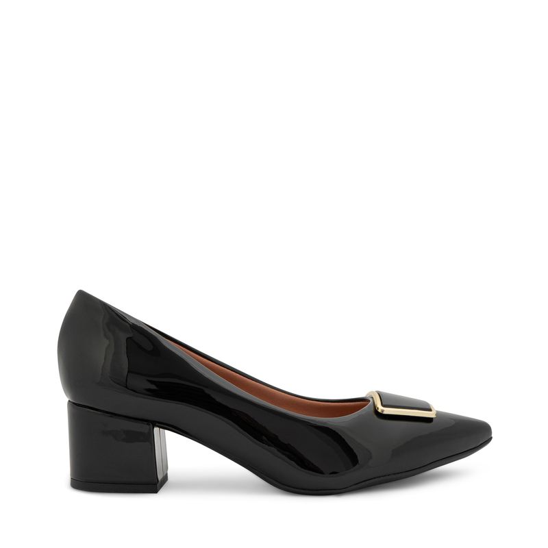 Deslumbra con elegancia en cada paso con estas zapatillas en color negro con una sofisticada textura de charol. El detalle dorado en la punta añade un toque de lujo, mientras que el tacón grueso proporciona estabilidad y confort. Perfectas para destacar en cualquier ocasión especial, estas zapatillas combinan estilo y funcionalidad para un look impecable.