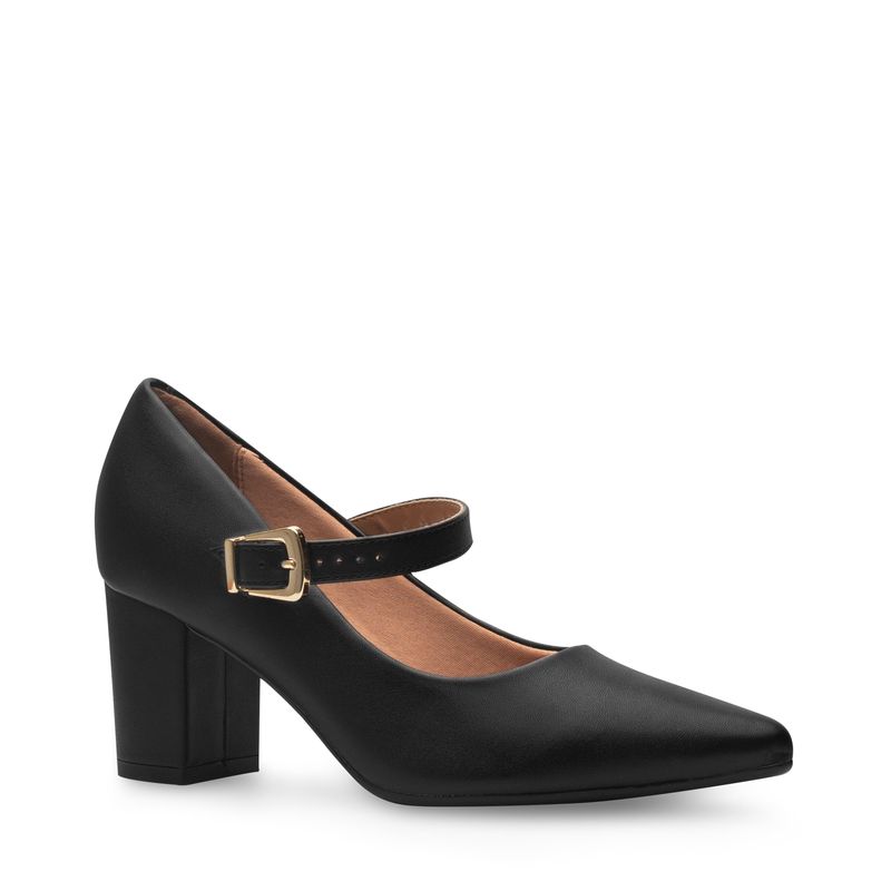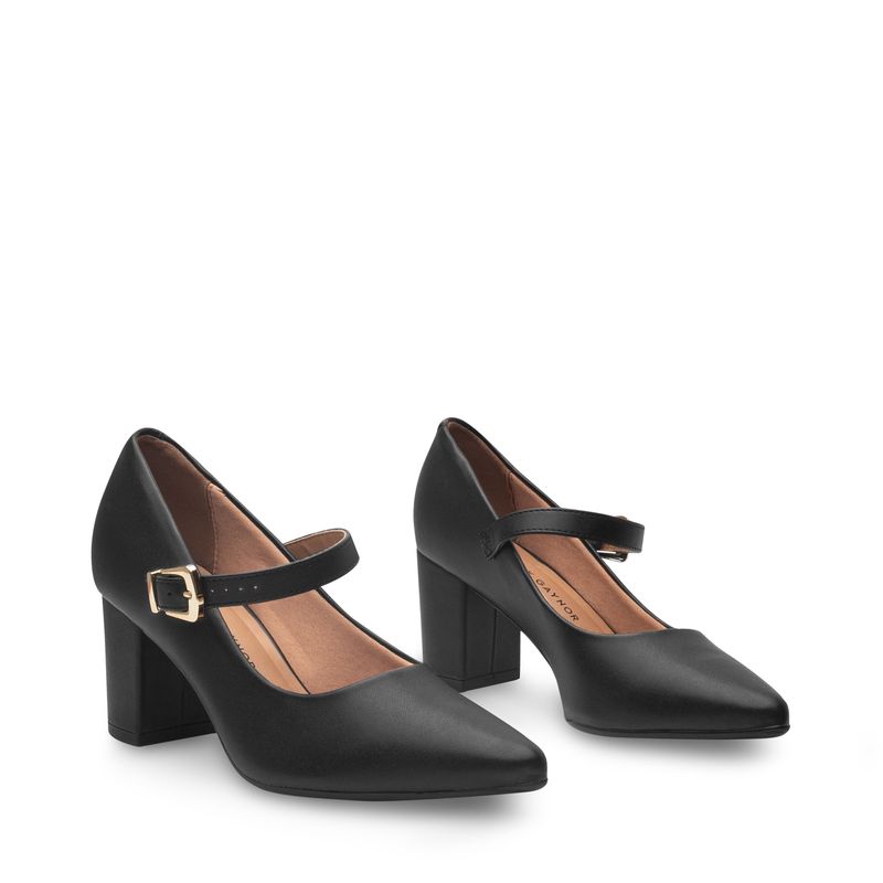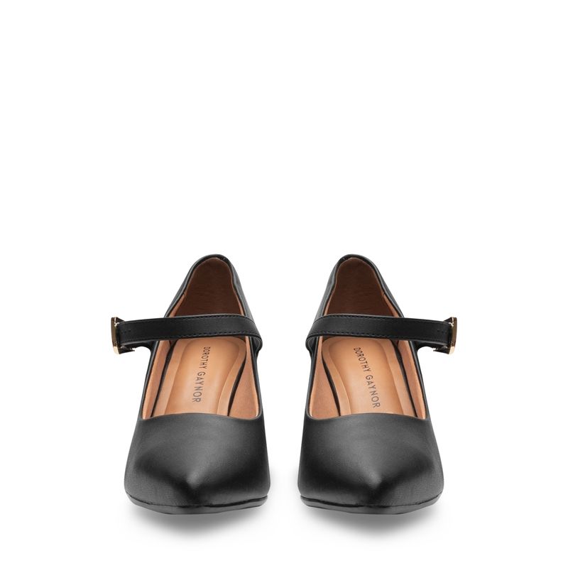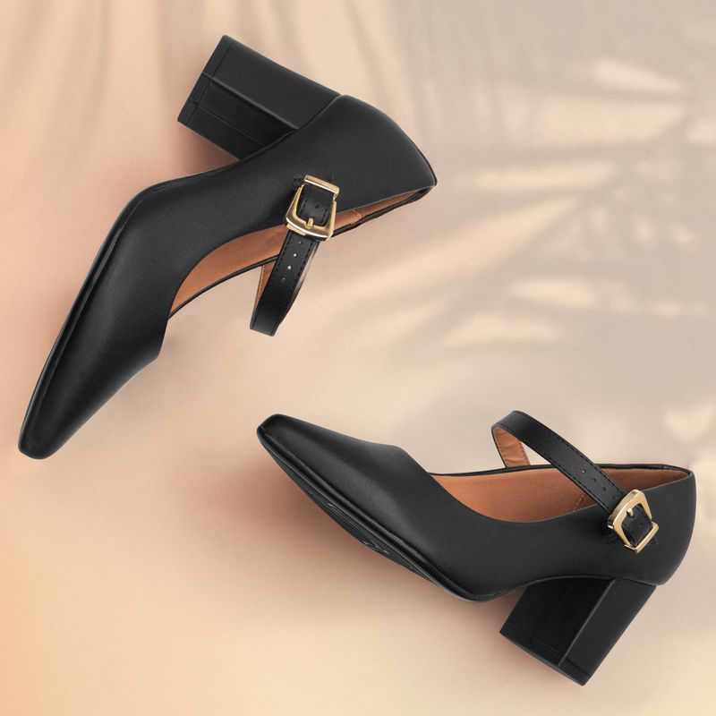 Refinadas y modernas, estas zapatillas en acabado negro mate destacan por su elegante terminación en punta y su diseño estructurado. La cinta ajustable con hebilla dorada no solo añade un detalle sofisticado, sino que asegura un ajuste cómodo y firme. El tacón semicircular aporta un toque contemporáneo y único, ideal para quienes buscan estilo sin renunciar a la originalidad. Perfectas para eventos formales o para elevar cualquier look diario con discreta distinción.