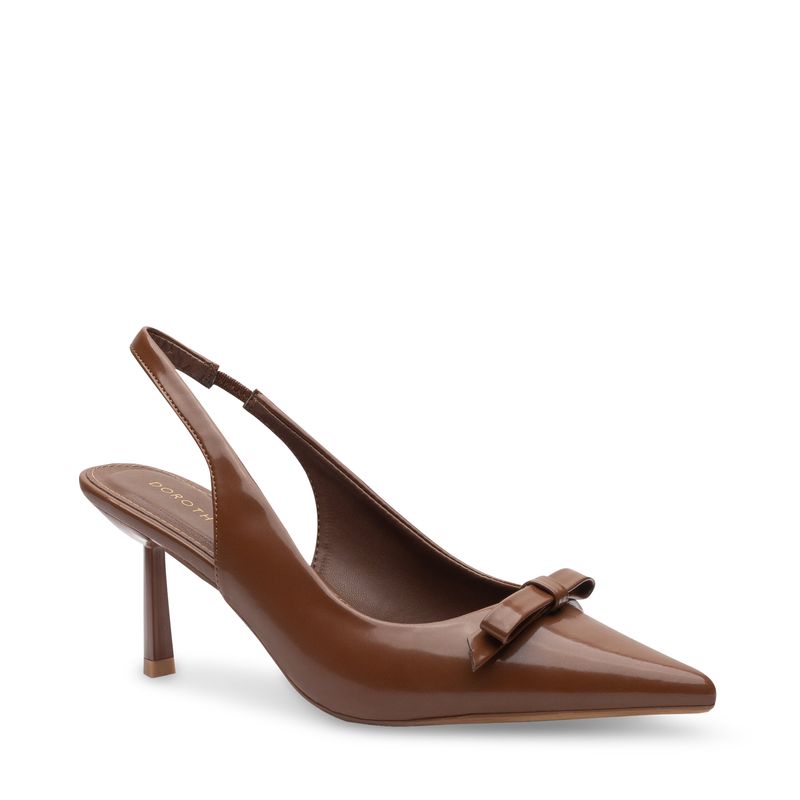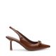 Esta zapatilla destaca por su silueta estilizada con punta fina y su acabado brillante en tono café, que aporta sofisticación instantánea. En el empeine, un moño delicado se convierte en el detalle protagonista: sutil, moderno y encantador. El tacón delgado, ligeramente acampanado en la base, ofrece altura con un soporte estable. El diseño descubierto en el talón y la correa delgada aportan frescura y un ajuste cómodo.
